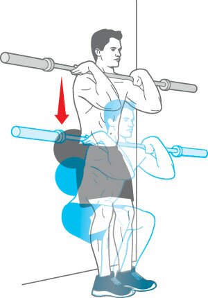Fix: Squeeze a medicine ball between your lower back and the wall, and then squat. You’ll push your hips back and keep your weight on your heels.
